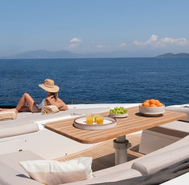 A complete interior rethinking focused on fluidity, balance, and a stronger connection between interior and exterior living areas. Light tones, subtle nautical accents, and refined materials create a calm, open, and effortless onboard experience.